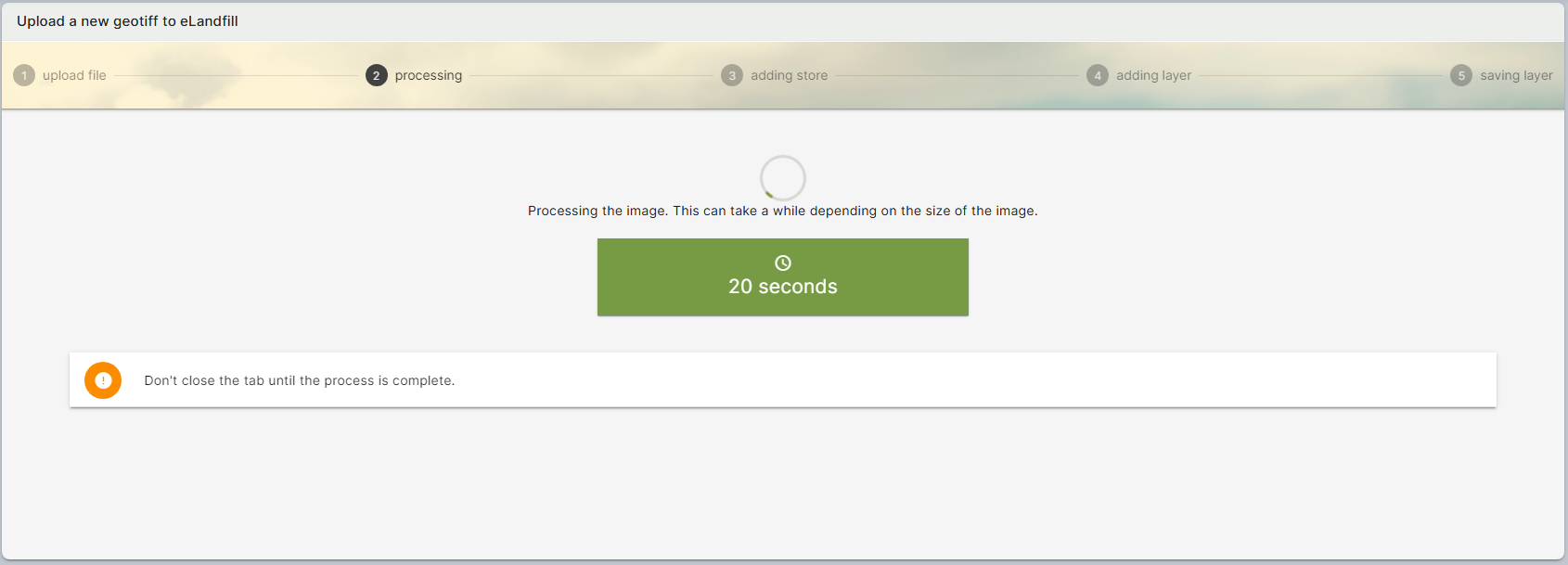 Then the file will be processed and you should leave the page open. The time for processing is depending on the size of the original file